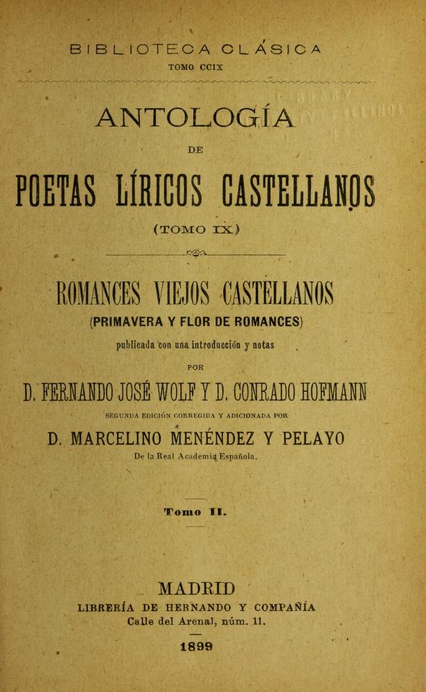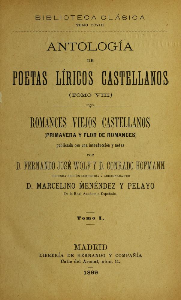 Romances viejos castellanos. Primavera y Flor Wolf - Hofmann